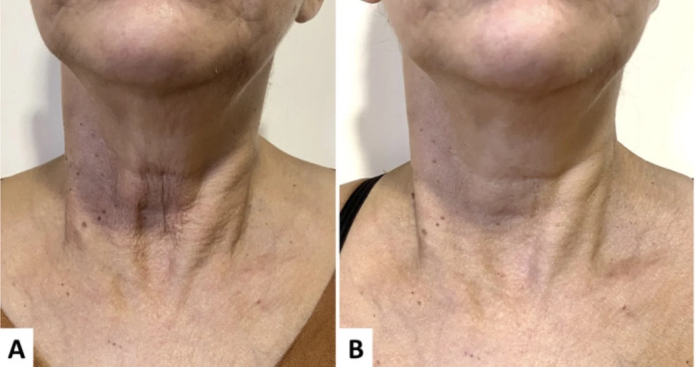 Together, these three products address both structural support and surface smoothness, providing visible tightening and a more graceful neckline.