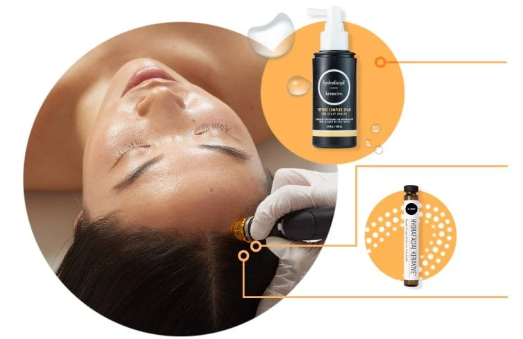 Hydrafacial's Vortex Fusion Technology offers relaxing, painless suction to easily remove dirt, oil, product buildup, and dead skin as it cleanses the scalp and hair follicles.